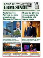 PS segura a Câmara de Valongo e Miguel de Oliveira continua a presidir à Junta de Ermesinde A presente edição é dominada pelas recentes Eleições Autárquicas. Apresentámos não só os resultados, como também as análises e as reações dos partidos ao que se passou na noite de 12 de outubro último, e que no nosso concelho deu a vitória ao PS na Câmara e na Junta de Freguesia de Ermesinde. Na nossa cidade, Miguel de Oliveira vai assim continuar à frente dos destinos da Junta, tendo, entretanto, já tomado posse. Após um interregno, a Mostra Internacional de Teatro esteve de regresso ao palco cultural do nosso concelho, tendo o nosso jornal acompanhado os primeiros três espetáculos do evento. Destaque ainda neste número para a VIII edição da Semana Académica da Universidade Sénior de Ermesinde e para o fecho do Museu da Magia na nossa terra, entre outros temas.